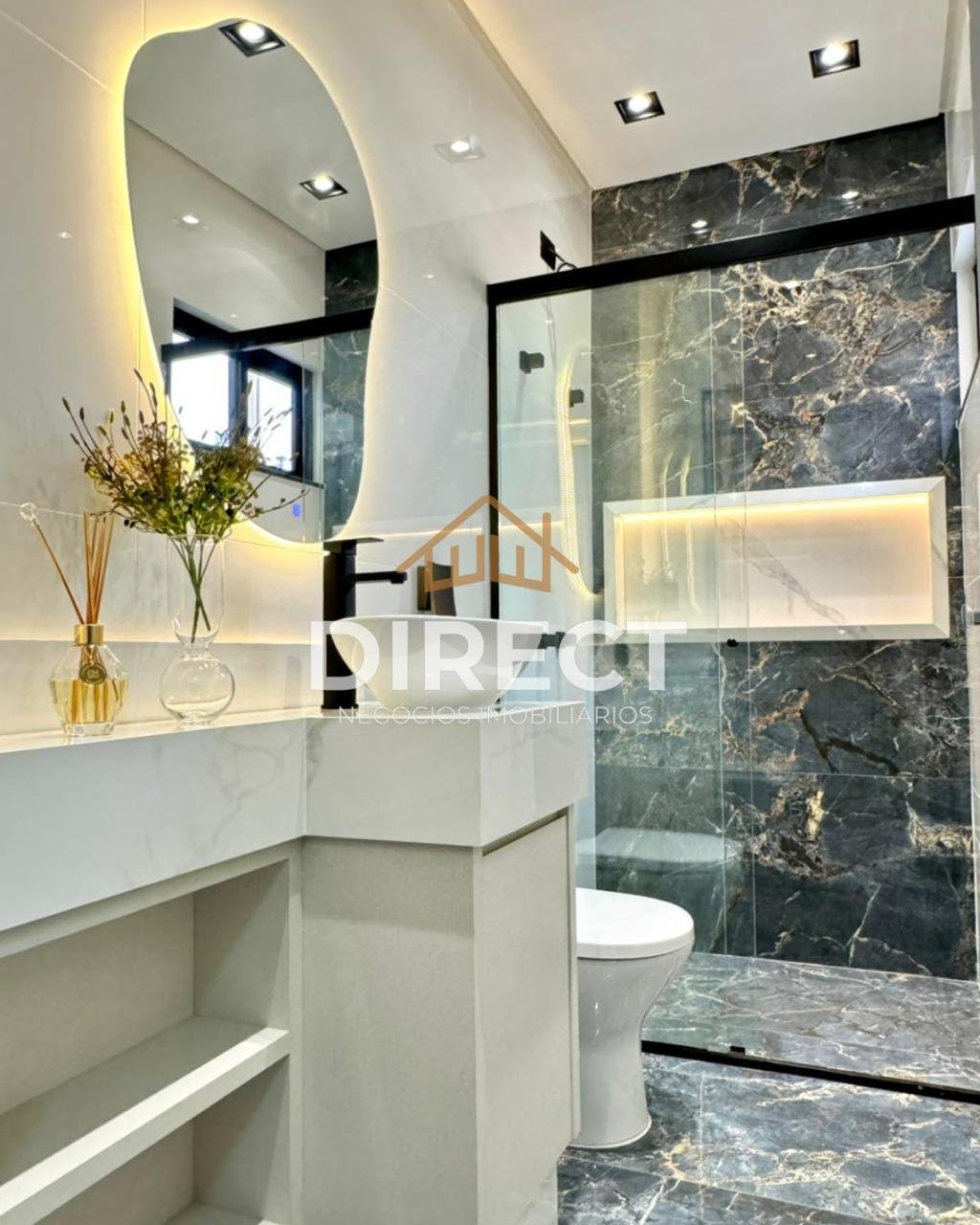 ▪️1 suíte + BW c/ Pia Esculpida em porcelanato, Nicho c/ Led e Box